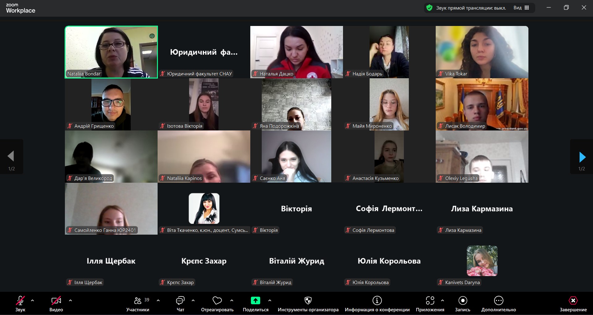 Модератор: Наталія Бондар, доктор філософії за спеціальністю «Право» доцент кафедри ДПД та українознавства