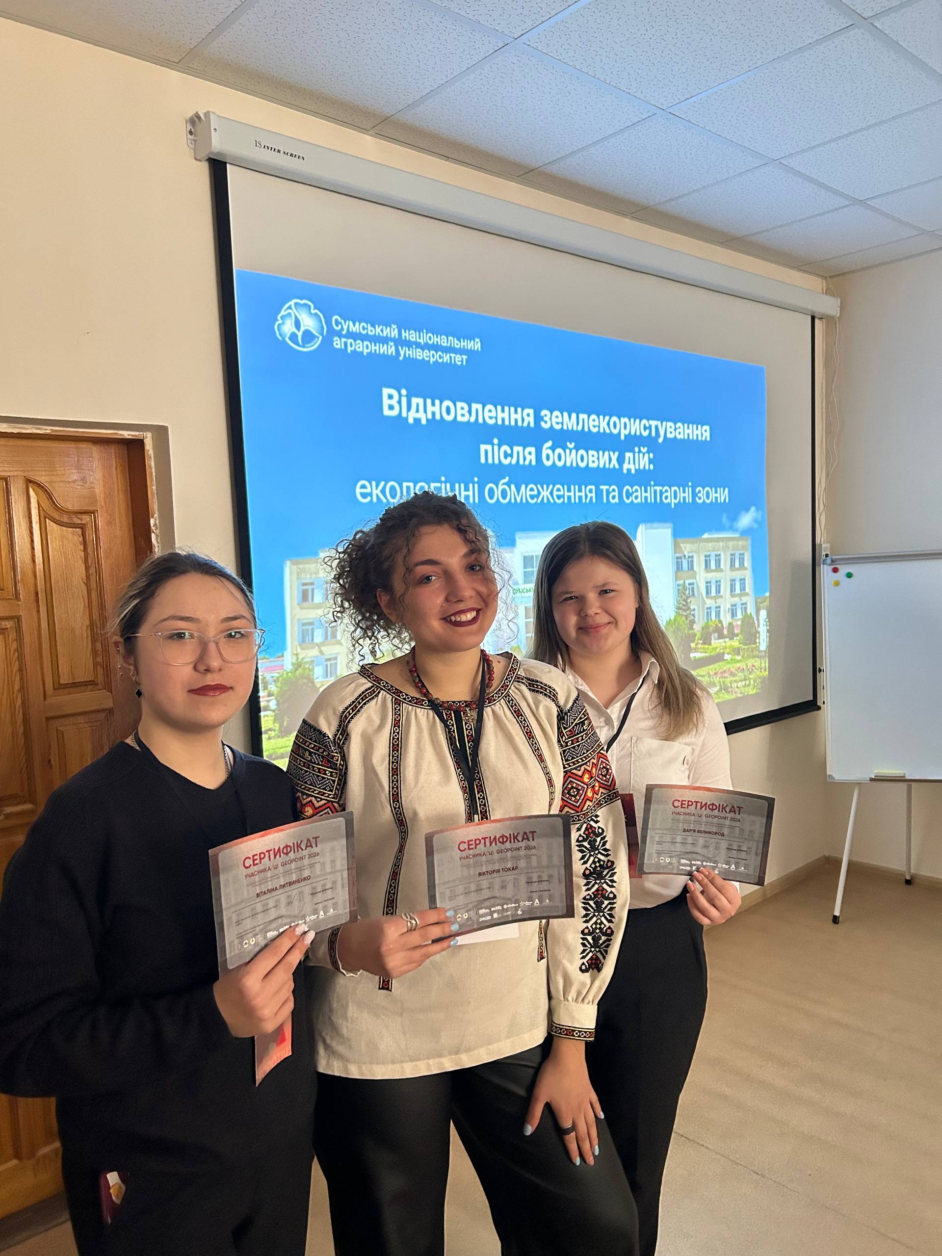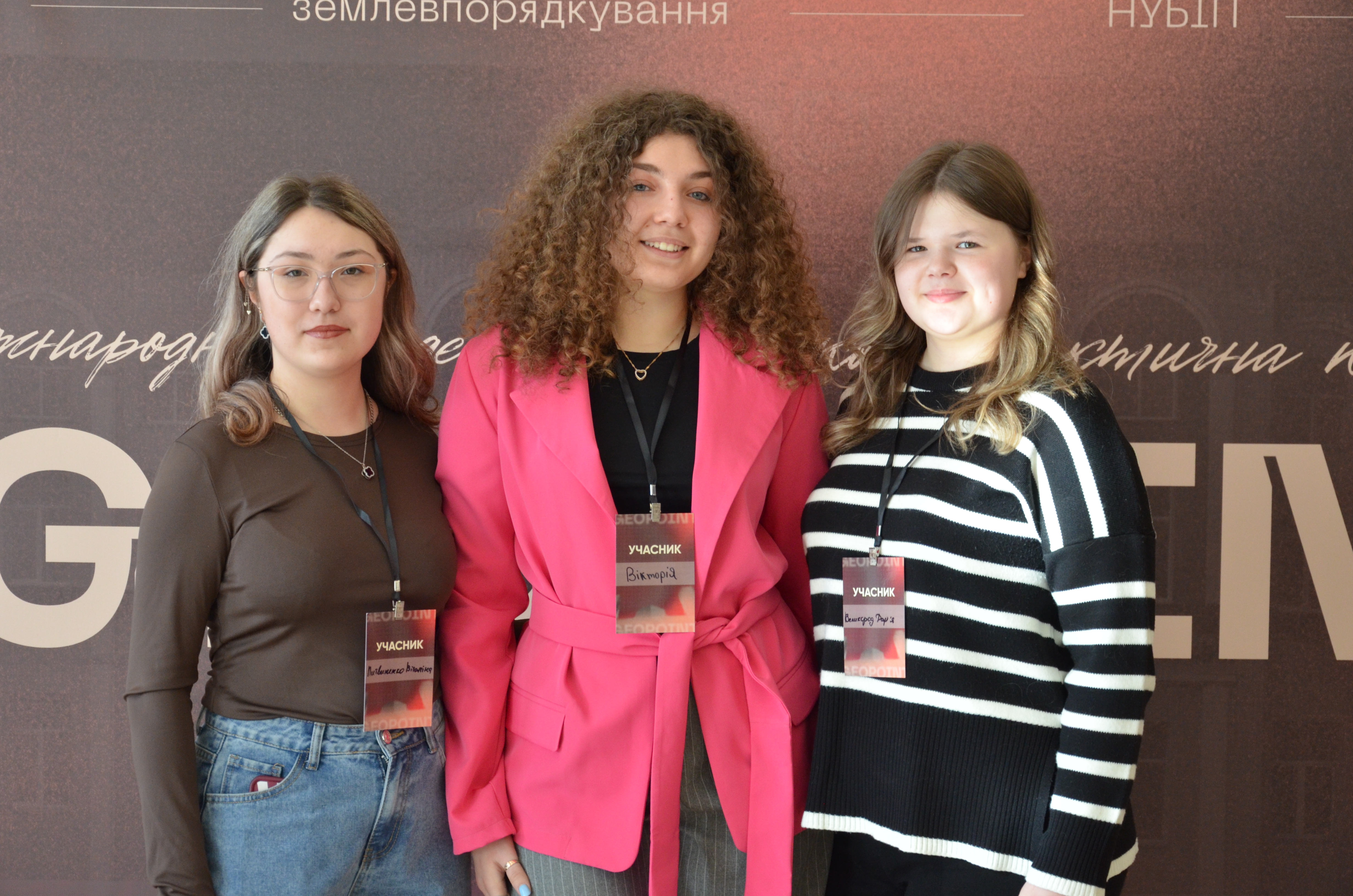 Вікторія Токар – студентка 3-го курсу, спеціальності Геодезія та землеустрій, Дарʼя Великород та Віталіна Литвиненко – студентки 2-го курсу, спеціальності Геодезія та землеустрій.
