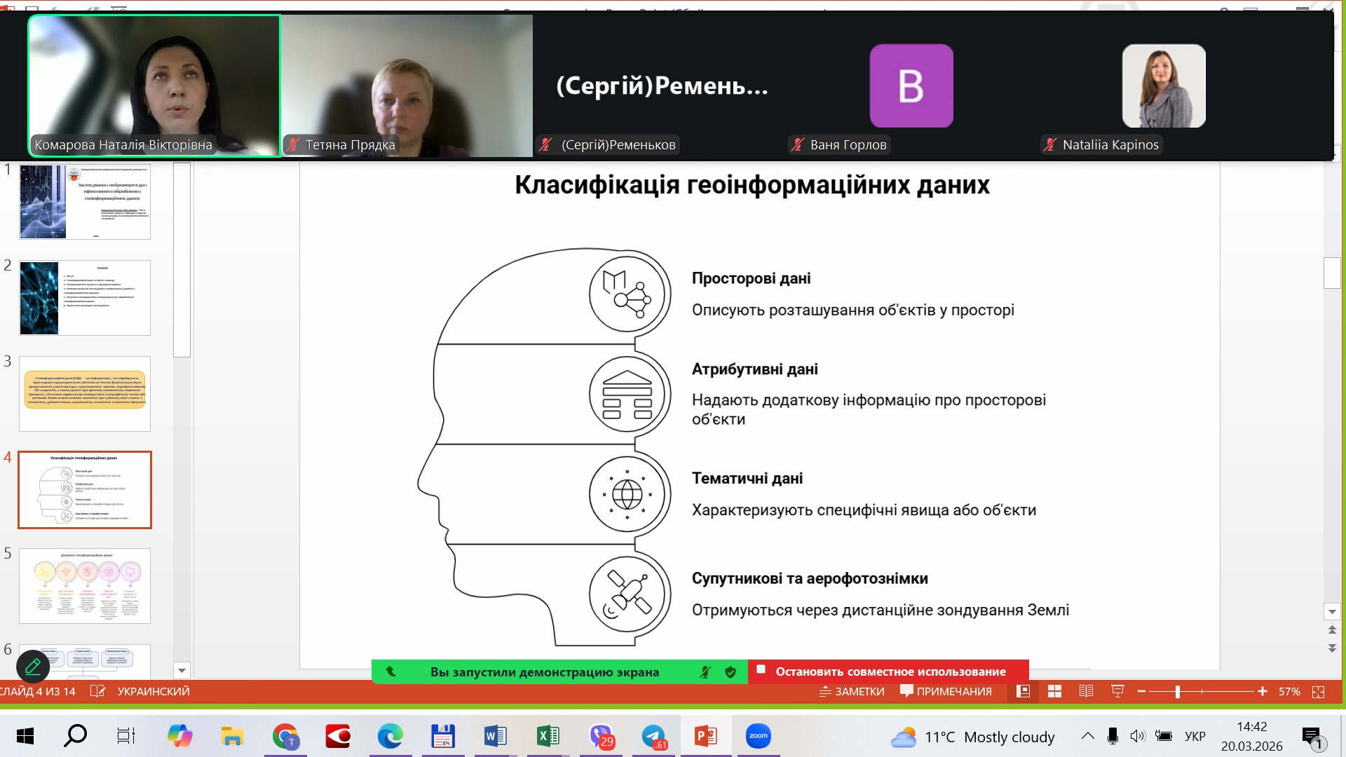 Лекторка, спираючись на власний науковий і практичний досвід, акцентувала увагу на перспективах інтеграції нейромереж у професійну діяльність фахівців галузі, що є важливим кроком до цифровізації геопросторових досліджень та підвищення ефективності прийняття управлінських рішень.