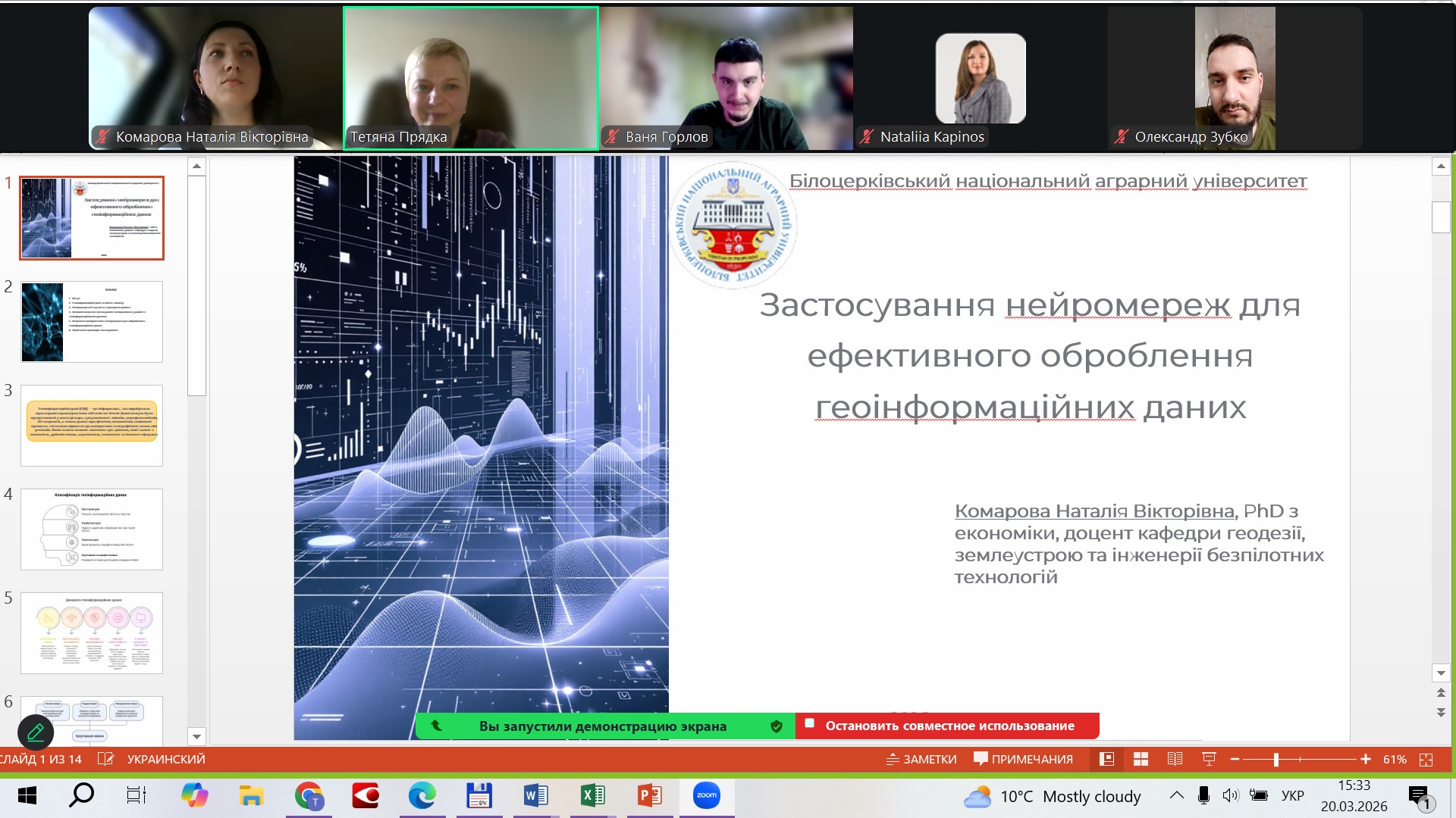 20 березня на кафедрі геодезії та землеустрою Сумського національного аграрного університету відбулася гостьова лекція на тему «Застосування нейромереж для ефективного оброблення геоінформаційних даних».