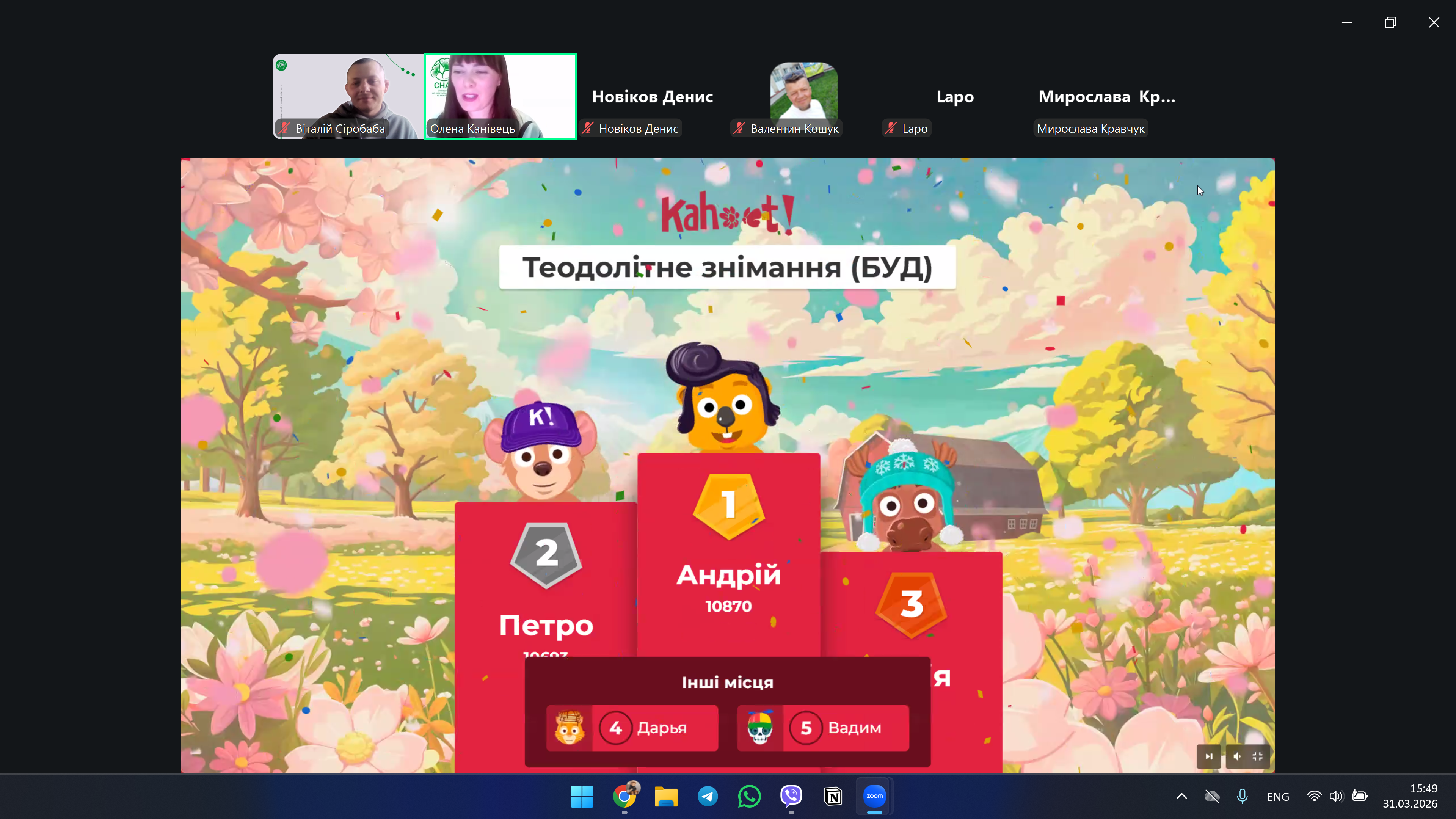 На завершення заходу проведено інтерактивну гру у форматі Kahoot, яка сприяла перевірці знань, підвищенню зацікавленості студентів та активізації навчального процесу.