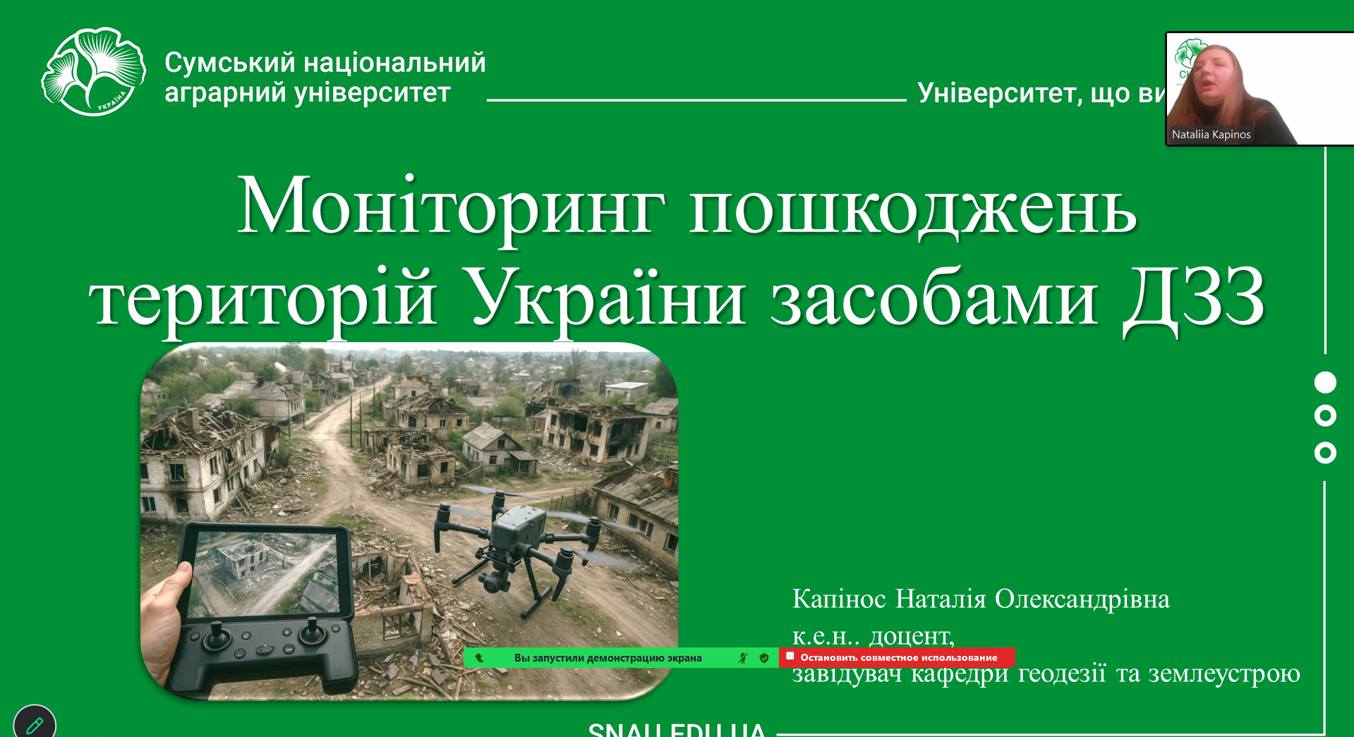 Лектор: Капінос Наталія, к.е.н., доцент, завідувач кафедри геодезії та землеустрою Сумського національного аграрного університету.