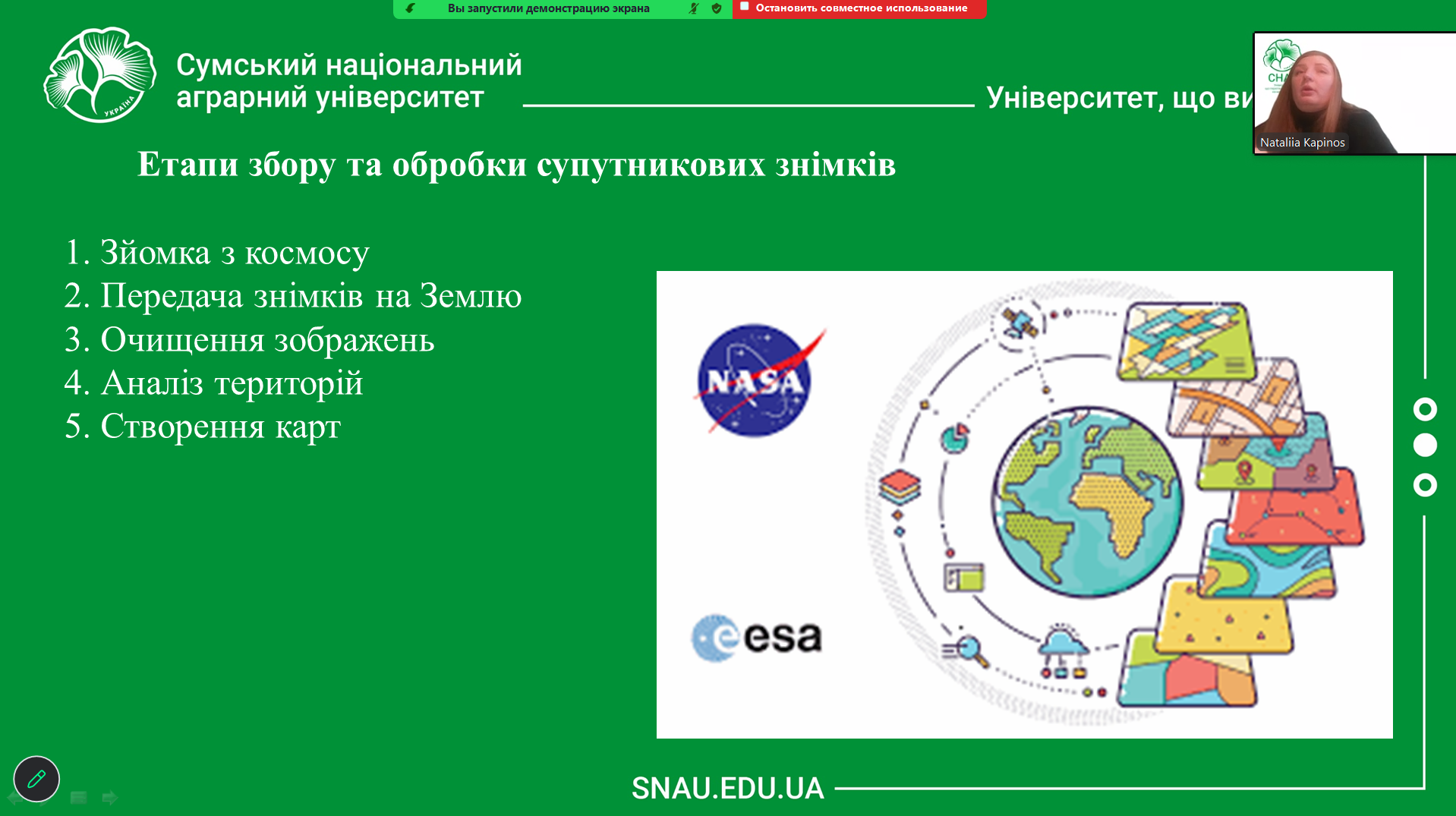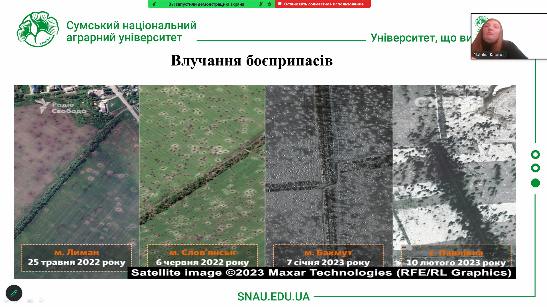 Лекторка, спираючись на власний науковий і практичний досвід, акцентувала на важливості впровадження сучасних геоінформаційних технологій у професійну підготовку фахівців, а також на перспективності використання ДЗЗ у сфері землеустрою, екологічного моніторингу та територіального планування.