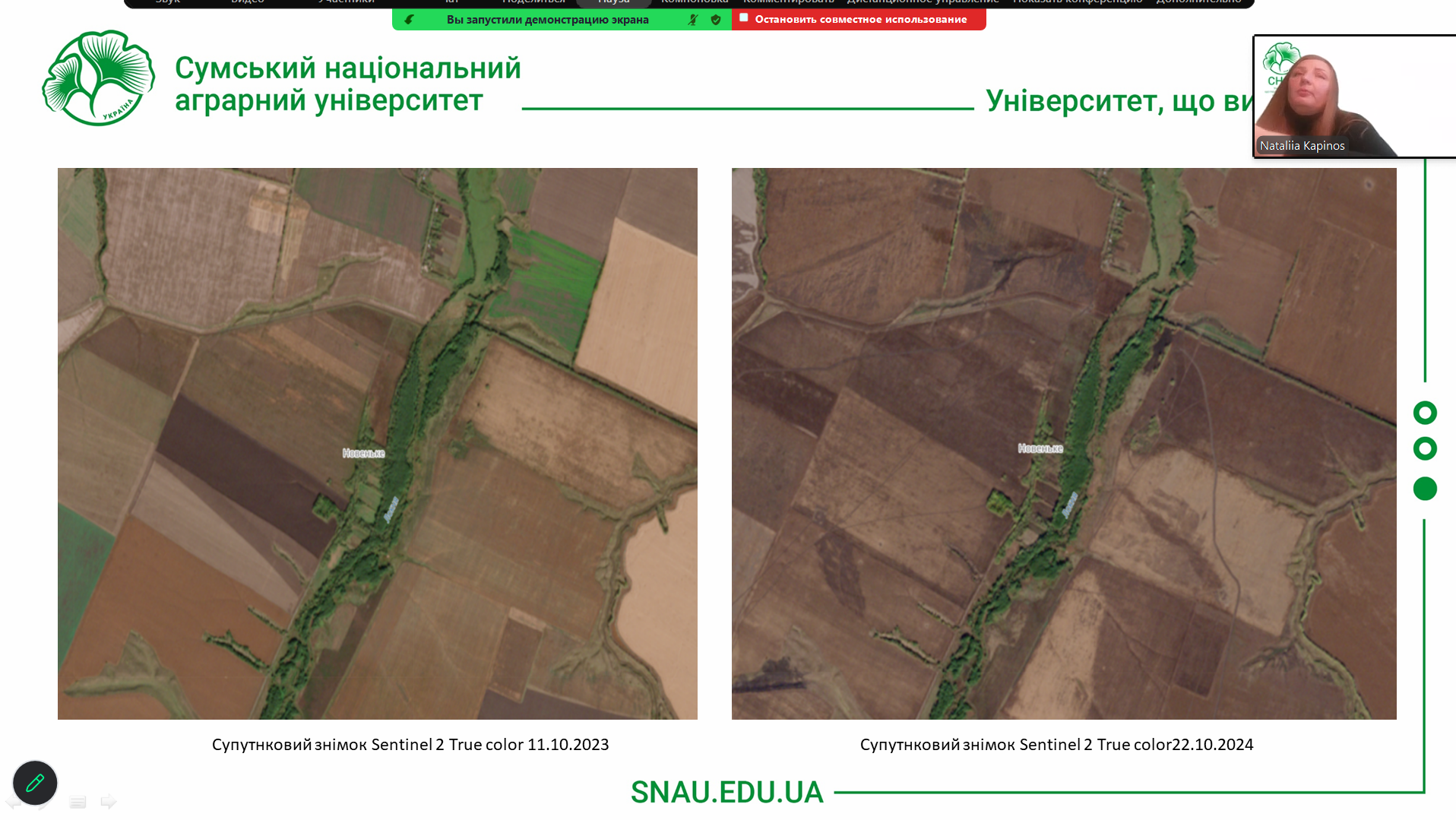 2 квітня відбувся науково-освітній інтерактив на тему «Моніторинг пошкоджень територій України засобами дистанційного зондування Землі». Під час заходу було висвітлено сучасні підходи до моніторингу пошкоджень територій, спричинених воєнними діями, із використанням супутникових даних та геоінформаційних технологій. Особливу увагу приділено застосуванню матеріалів дистанційного зондування Землі для виявлення руйнувань інфраструктури, оцінювання змін землекористування, аналізу деградаційних процесів та визначення пріоритетних напрямів відновлення територій.