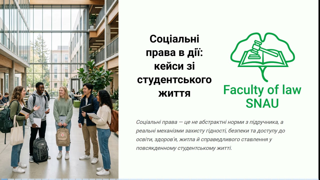 Особливу увагу було приділено тому, як студент може розпізнати порушення соціального права, куди звертатися за підтримкою та чому важливо переходити від емоційного сприйняття проблеми до чіткого алгоритму дій.